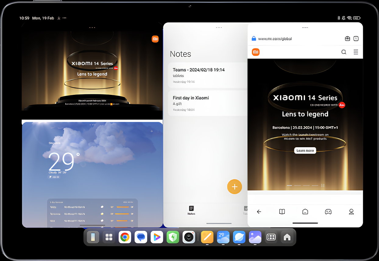 Работа с окнами по удобству не уступает возможностям ПК, и размер окон можно свободно регулировать. Вы можете одновременно открыть четыре приложения, при этом система будет по-прежнему работать плавно, делая вашу многозадачную среду комфортной. Благодаря новой ОС Xiaomi HyperOS работа устройства остается стабильной как при работе с одним приложением, так и с несколькими.