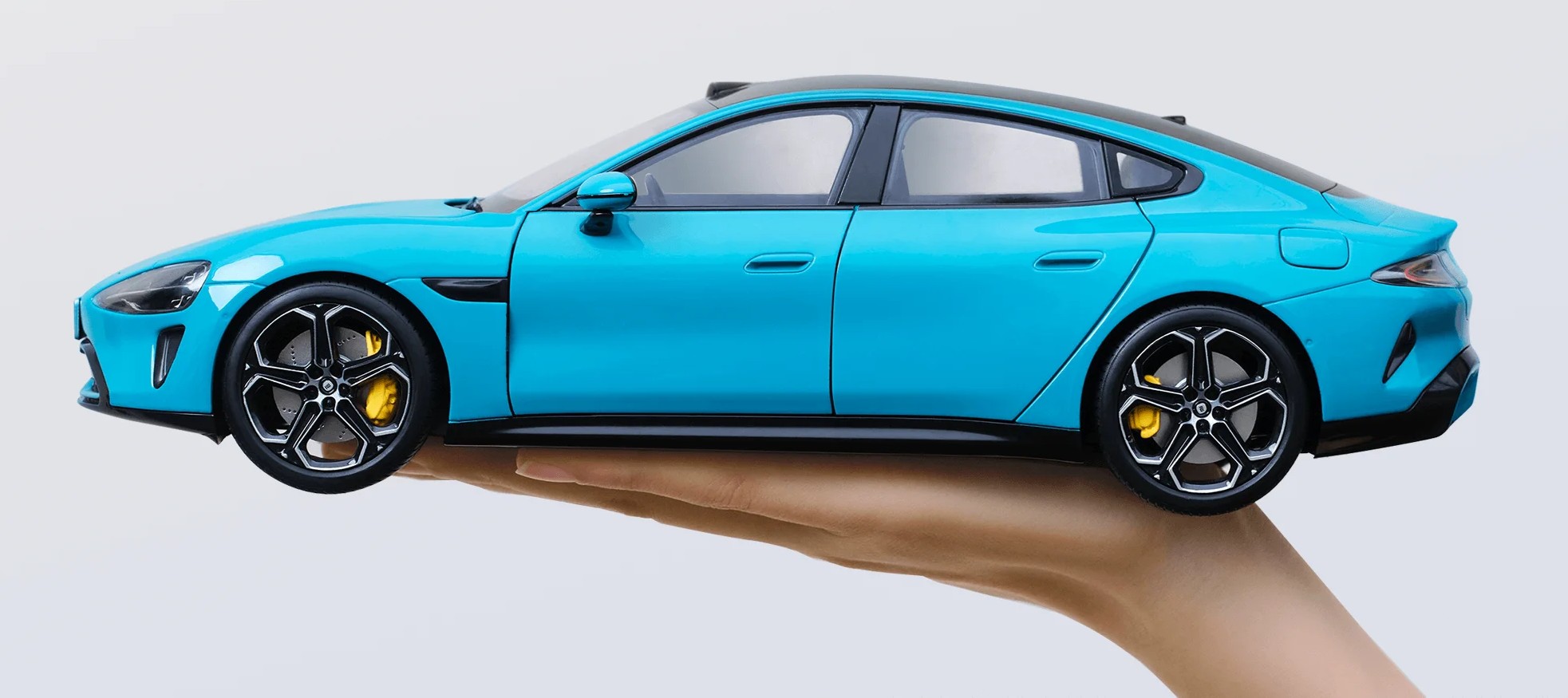 Уменьшенная модель Xiaomi SU7 Die-cast Model Car выполнена в масштабе 1:18 и точно повторяет пропорции оригинального автомобиля. Корпус изготовлен из цинкового сплава с элементами из пластика и полиуретана, благодаря чему модель выглядит детализированной и ощущается увесистой. Доступны два варианта расцветки — синий и оранжевый.