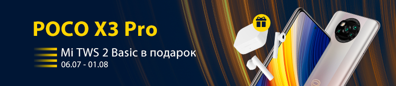 Обновите свой гаджет и получите подарок! Приобретайте смартфон POCO X3 Pro и получайте в подарок беспроводные наушники Mi TWS 2 Basic. Акция действует с 6 июля по 1 августа 2021 года.