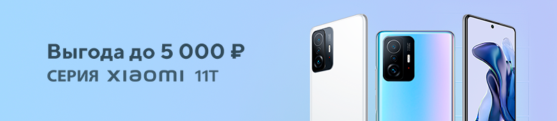 Только с 1 по 10 февраля на серию смартфонов Xiaomi 11T действует скидка до 5000 рублей. При заказе от 2500 рублей доставим покупку по Ижевску бесплатно!
